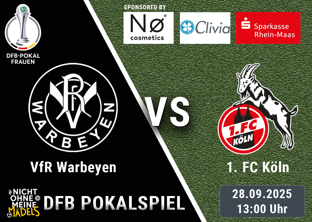 Am 28. September 2025 um 13:00 Uhr wartet ein absolutes Fußball-Highlight auf uns: Unsere Frauen des VfR Warbeyen treffen in der 2. Runde des DFB-Pokals auf niemand Geringeren als den 1. FC Köln – ein Traditionsverein aus der Bundesliga mit großer Geschichte und einer starken Frauenfußballabteilung.